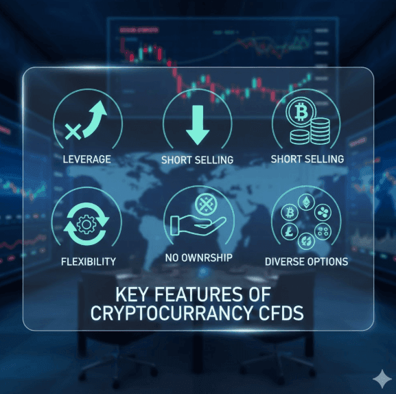 البيع على المكشوف: تتيح عقود الفرق (CFDs) للمتداولين اتخاذ مراكز قصيرة. إذا كنت تعتقد أن سعر العملة الرقمية سينخفض، يمكنك بيع عقد فرق لتحقيق الربح من الحركة الهبوطية.