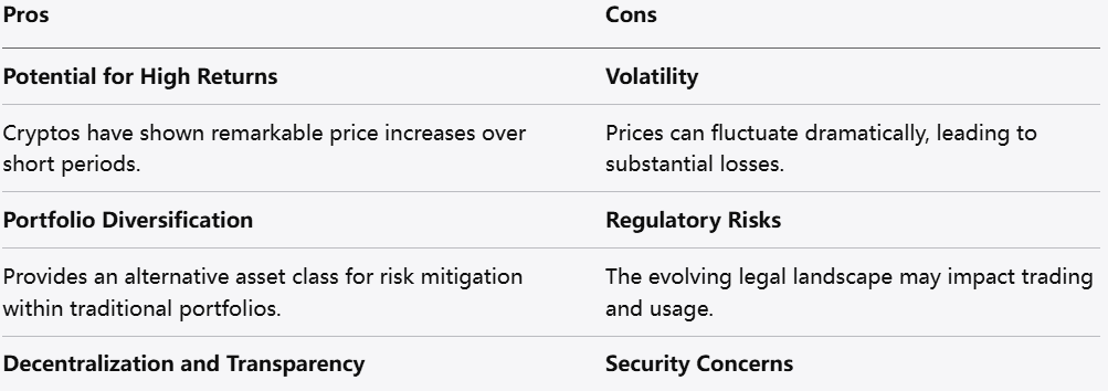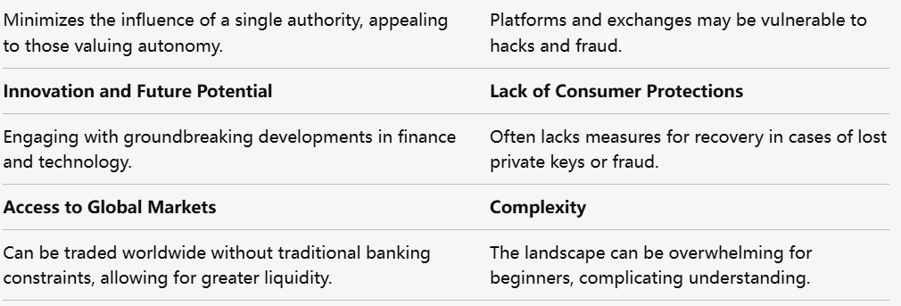 الاستثمار في العملات الرقمية يأتي مع مجموعة من المزايا والعيوب الخاصة به. فهم هذه العوامل يمكن أن يساعد المبتدئين على اتخاذ قرارات مستنيرة.