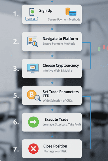 يشمل تداول عقود الفروقات على العملات الرقمية في Markets.com عملية بسيطة وسهلة. إليك دليل خطوة بخطوة: