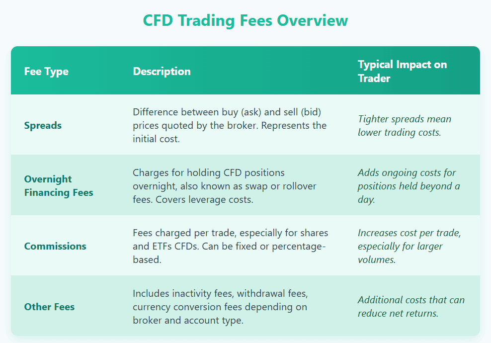 رغم المزايا العديدة، ينطوي تداول عقود الفروقات على بعض التكاليف التي يجب على المتداولين الانتباه لها.