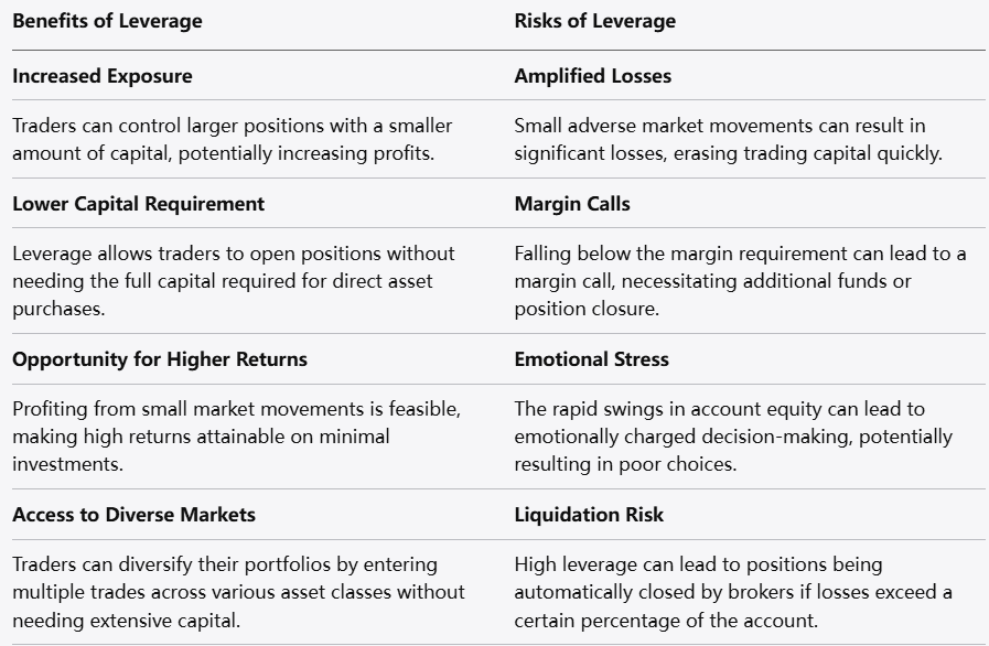 الرافعة المالية هي إحدى الميزات الأساسية لعقود CFD، حيث تتيح للمتداولين التحكم في مراكز أكبر برأس مال أصغر نسبيًا. ومع ذلك، فهي تأتي مع مزايا ومخاطر.
