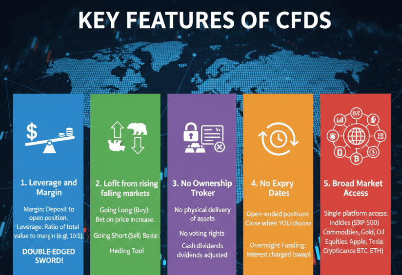 فيما يلي أبرز ميزات العقود مقابل الفروقات كما تعمل في معظم الأسواق المنظمة: