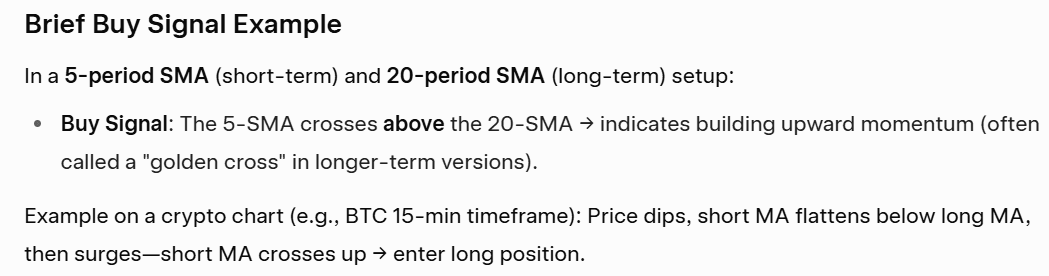 عندما يتقاطع المتوسط المتحرك قصير المدى فوق المتوسط المتحرك طويل المدى، فإنه يولد إشارة شراء، مما يشير إلى زخم صعودي.
