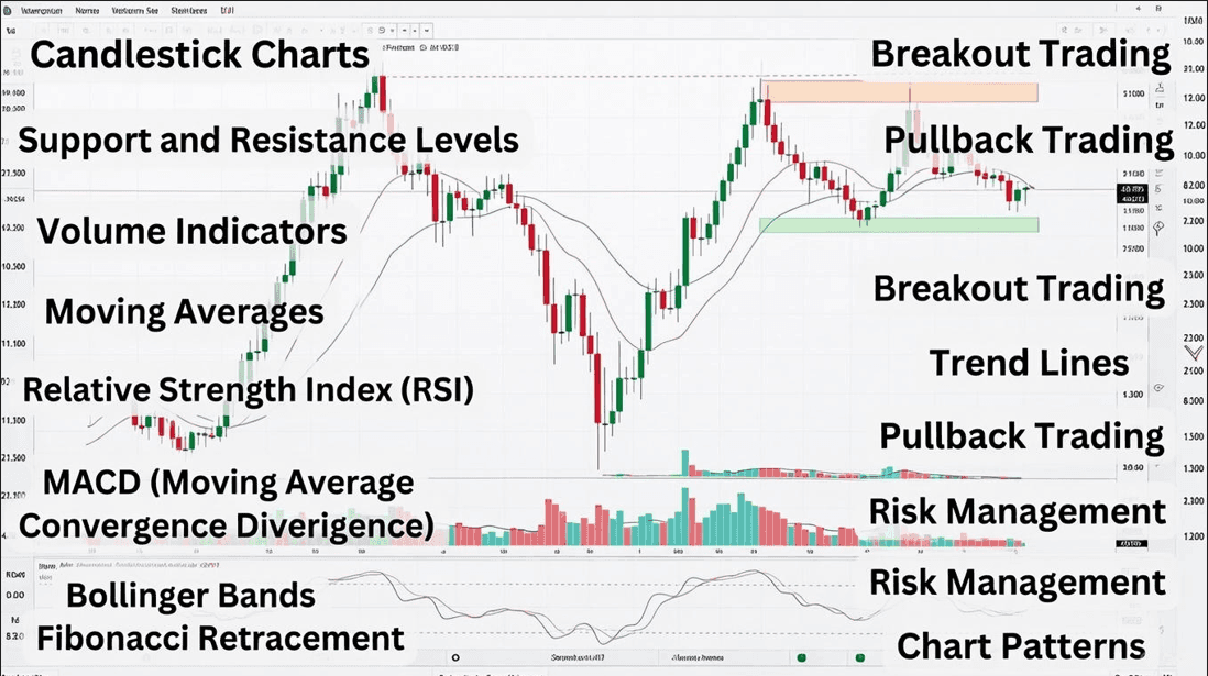 تعلم التعرف على أنماط المخططات مثل الرأس والكتفين، القمم والقيعان المزدوجة، والأعلام يمكن أن يساعد في تحديد نقاط الانعكاس أو الاستمرار المحتملة. المؤشرات مثل مؤشر القوة النسبية (RSI) يمكن أن تشير إلى حالات الشراء المفرط أو البيع المفرط، مما يقترح نقاط دخول أو خروج محتملة.