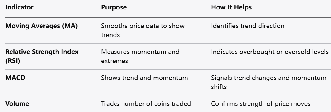 المتوسطات المتحركة (MA): تعمل على تنعيم بيانات الأسعار لتحديد الاتجاهات.