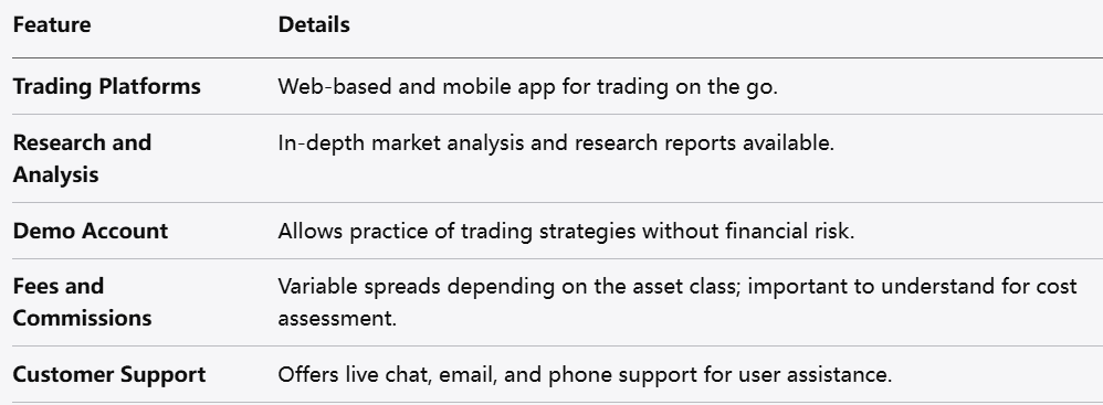 بينما تسمح العقود مقابل الفروقات (CFDs) بالتداول على الأسهم، المؤشرات، السلع، الفوركس، والعملات الرقمية، إلا أن ليس كل المنصات تقدم نفس نطاق المنتجات. ضع في اعتبارك اهتماماتك في التداول وما إذا كانت المنصة تغطي الأصول التي ترغب في التداول بها.