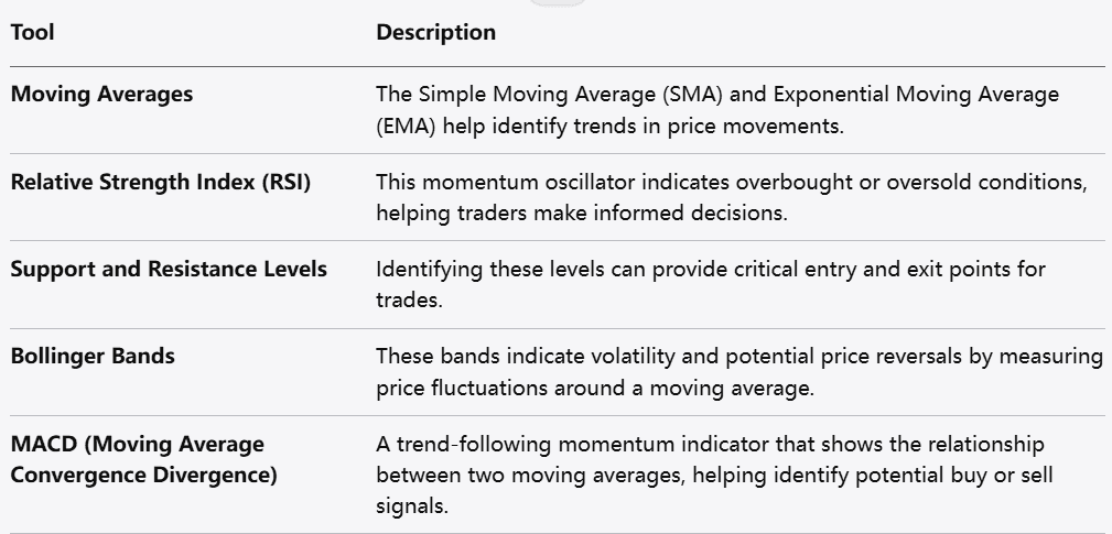 يركز التحليل الفني على تحركات الأسعار التاريخية للتنبؤ بالاتجاهات المستقبلية. تشمل العناصر الرئيسية: