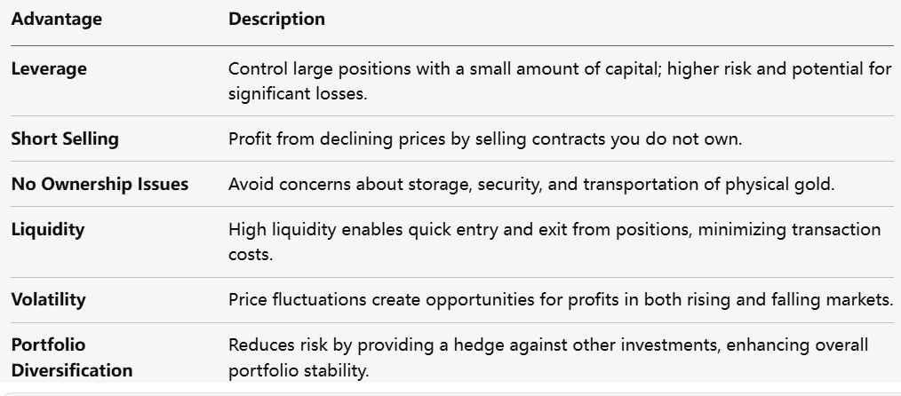لا يحتاج المتداولون للتعامل مع تخزين الذهب أو تأمينه أو نقله، مما يسهل التركيز على استراتيجيات التداول دون تعقيدات إدارة الأصول المادية.