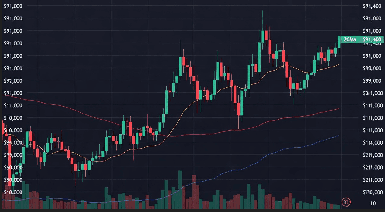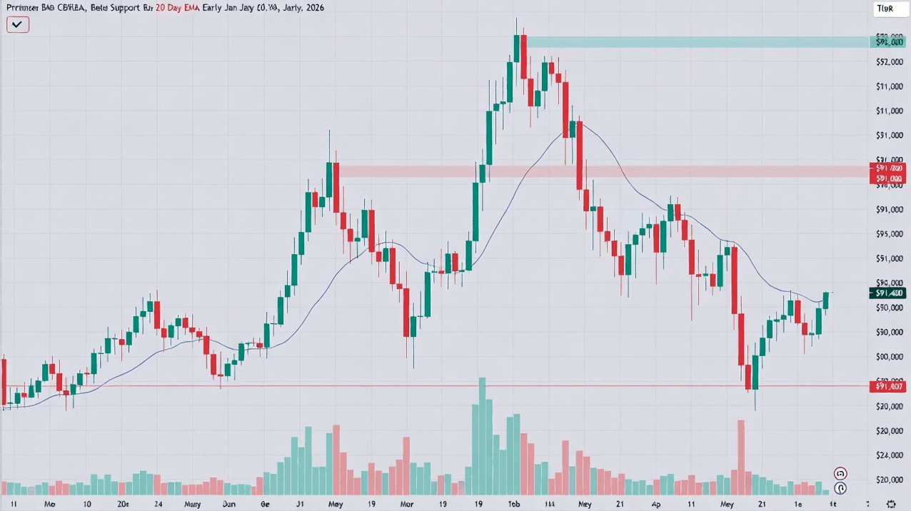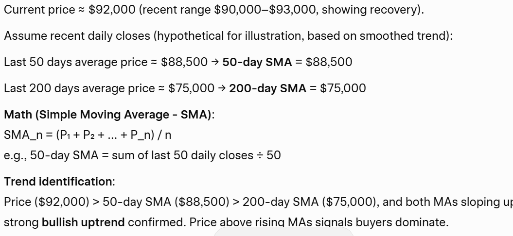 فيما يلي مثال واقعي موجز يوضح كيف تساعد المتوسطات المتحركة في تسوية بيانات الأسعار، باستخدام أسعار الإغلاق اليومية التقريبية لبيتكوين (BTC-USD) في أوائل يناير 2026 (استنادًا إلى مستويات السوق حول 92,000–96,000 دولار أمريكي منتصف يناير 2026).