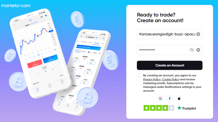 قم بزيارة موقع Markets.com وابحث عن خيار تسجيل الحساب.