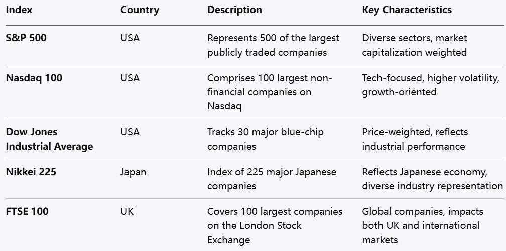تداول مؤشرات CFDs يقدم طريقة قوية للوصول إلى مجموعة متنوعة من الأسواق مع تقليل مخاطر الأسهم الفردية. مع منصات مثل Markets.com التي توفر الوصول إلى المؤشرات الرئيسية مثل S&P 500، Nasdaq 100، Dow Jones Industrial Average، Nikkei 225، FTSE 100، NIFTY 50، وGermany 40 (DAX)، يمكن للمتداولين الاستفادة من تحركات السوق مع تبني نهج متنوع.