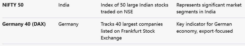 - نظرة عامة: يتتبع مؤشر DAX أكبر 40 شركة مدرجة في بورصة فرانكفورت، ويُعد مؤشراً حيوياً لصحة السوق الألماني والأوروبي.