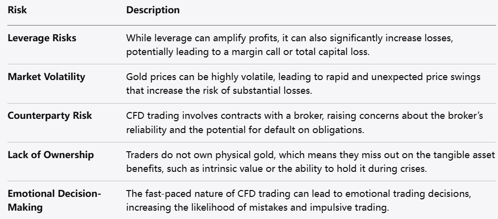 مخاطر تداول عقود الفروقات على الذهب