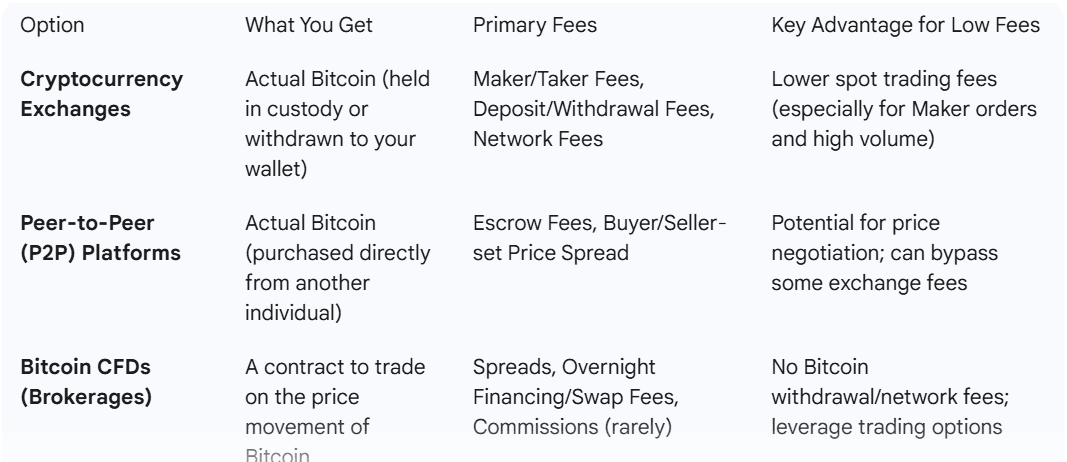 ما هي الخيارات لشراء البيتكوين بأدنى رسوم؟