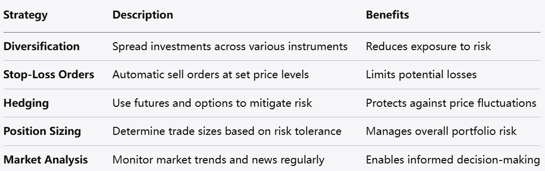 تُعد إدارة المخاطر الفعّالة عنصرًا حاسمًا في تداول النفط نظرًا للتقلبات الكبيرة التي تميّز هذا السوق. وغالبًا ما يستخدم المتداولون عدة استراتيجيات للحد من المخاطر: