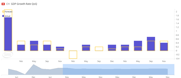 (Quartalsmäßiges schweizer BIP-Wachstum, Chart, Quelle: Trading Central)