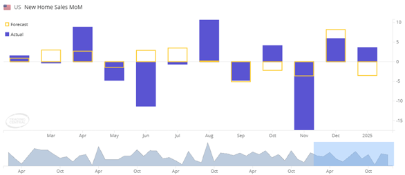 Im Dezember 2024 stiegen die Verkäufe neuer Eigenheime in den USA um 3,6% auf eine saisonbereinigte Jahresrate von 698.000 Einheiten und übertrafen damit die Erwartungen. Dieser Zuwachs ist auf eine Zunahme der Bestände an neuen Häusern zurückzuführen, die den Käufern mehr Auswahlmöglichkeiten bieten. Wirtschaftswissenschaftler gehen davon aus, dass sich die Verkäufe neuer Häuser in den kommenden Monaten aufgrund der sich stabilisierenden Hypothekenzinsen und der starken Nachfrage weiter verbessern werden.