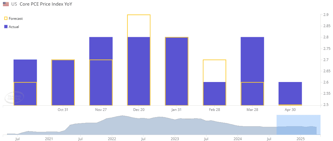 (Jährlicher amerikanischer PCE-Kernpreisindex, Chart, Quelle: Trading Central)