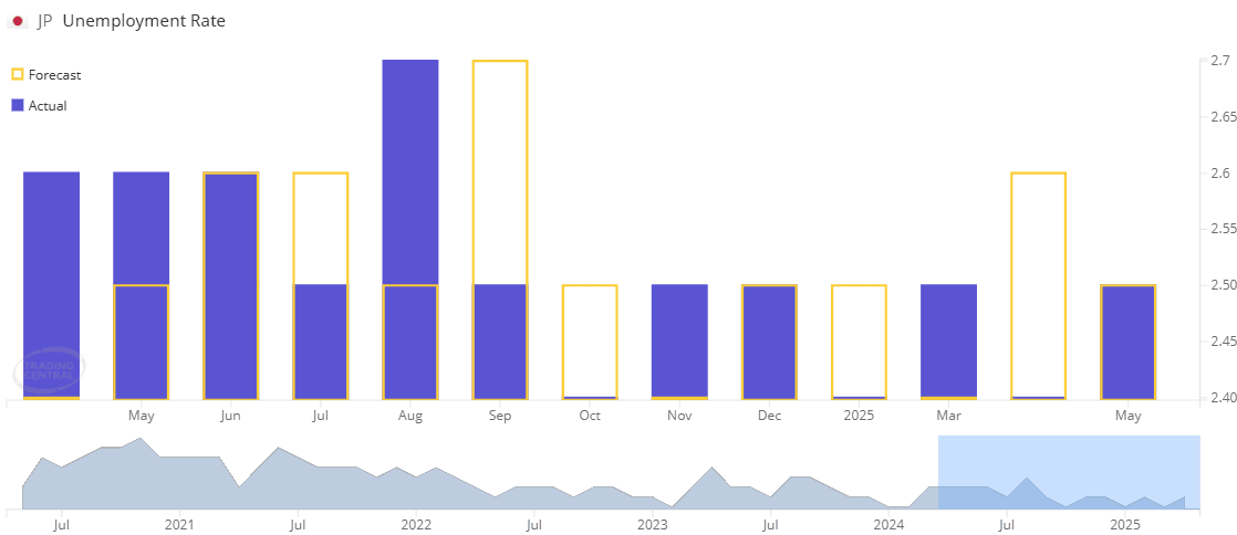 (Quartalsmäßige japanische Arbeitslosenquote, Chart, Quelle: Trading Central)