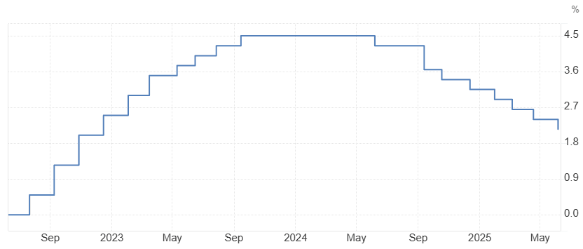 Der Leitzins der Europäischen Zentralbank (EZB) liegt derzeit bei 2,15 % und es wird allgemein erwartet, dass er bei der anstehenden Entscheidung am 24. Juli um 12:15 Uhr GMT unverändert bleiben wird. Dieser stabile Ausblick spiegelt den vorsichtigen Ansatz der EZB wider, die die Inflationsentwicklung und die wirtschaftliche Erholung in der Eurozone beobachtet. Die Beibehaltung der Zinssätze ermöglicht es der EZB, ein Gleichgewicht zwischen der Notwendigkeit von Preisstabilität und einer übermäßigen Verschärfung der finanziellen Bedingungen zu finden, insbesondere angesichts des schwachen Wachstums in Teilen des Blocks.