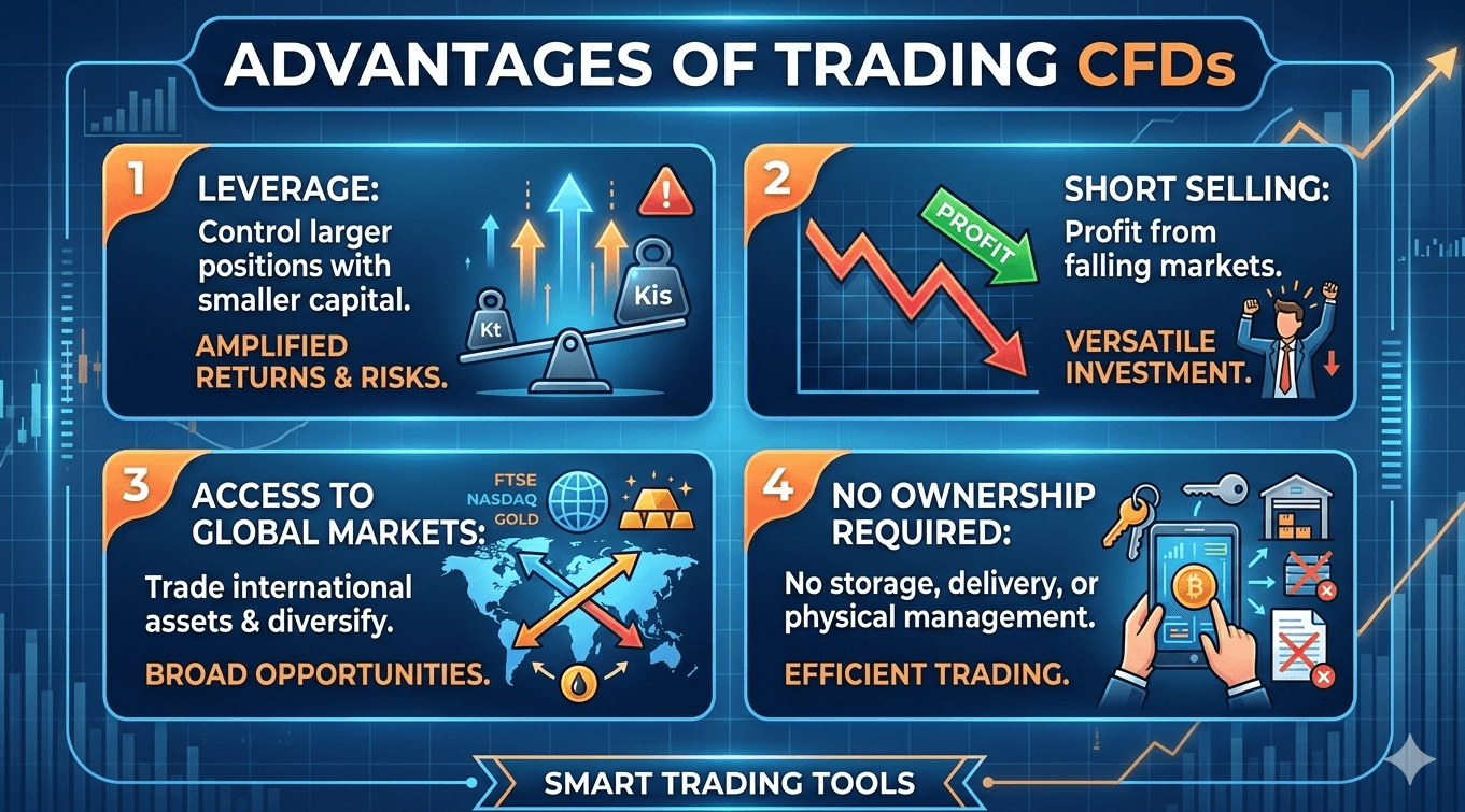 CFDs are financial derivatives that allow traders to speculate on the price movements of various assets without actually owning the underlying assets. This means you can trade on asset classes like stocks, commodities, indices, and cryptocurrencies by simply entering a contract with a broker.