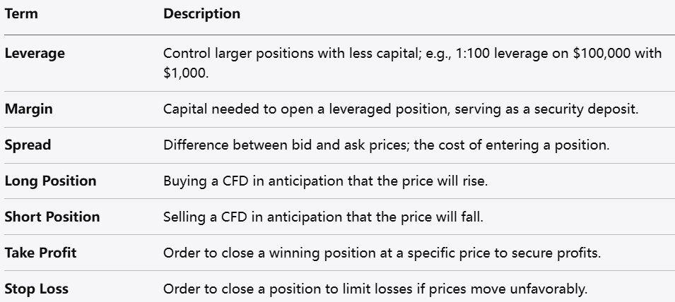 Having a solid grasp of CFD terminology is vital for effective communication and understanding in the trading environment. Here’s a selection of key terms associated with CFD trading: