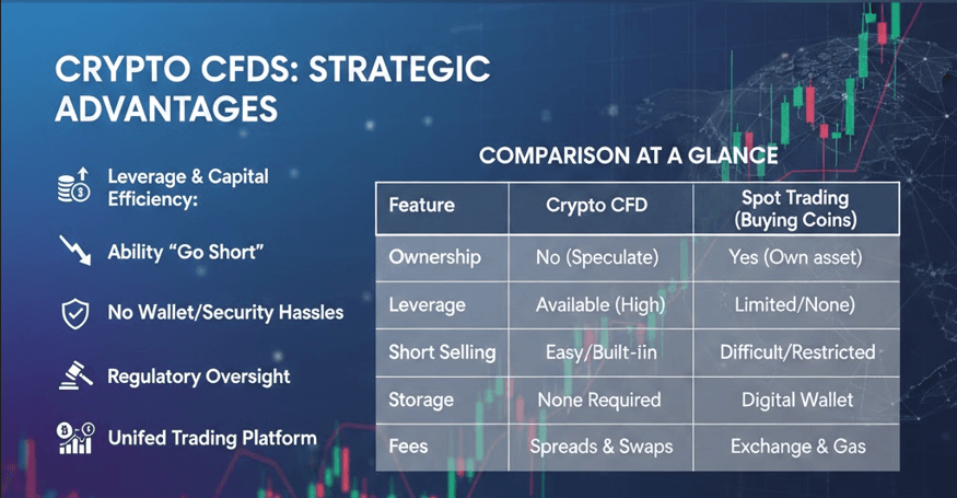 • No Ownership of Underlying Assets: When trading CFDs, you don't own the underlying cryptocurrency. This eliminates the need for wallets and reduces the concerns related to security and storage.