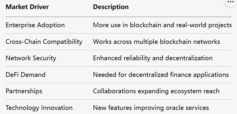 The decentralized oracle space is becoming increasingly competitive, with several projects vying to provide reliable external data to smart contracts. This competition places pressure on Chainlink to maintain its technological edge and network reliability to retain market interest.