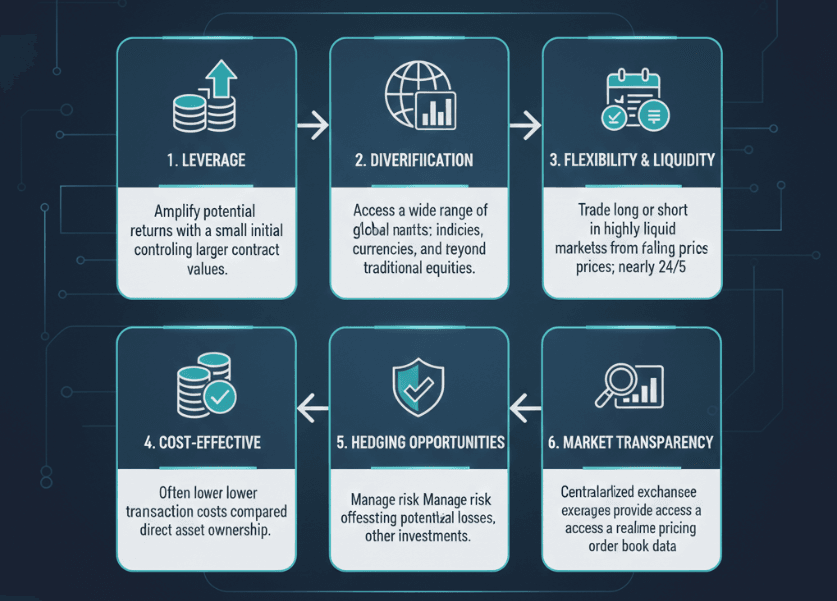 Leverage: Like traditional futures trading, futures CFDs are often traded with leverage, allowing for greater exposure with a smaller capital investment.