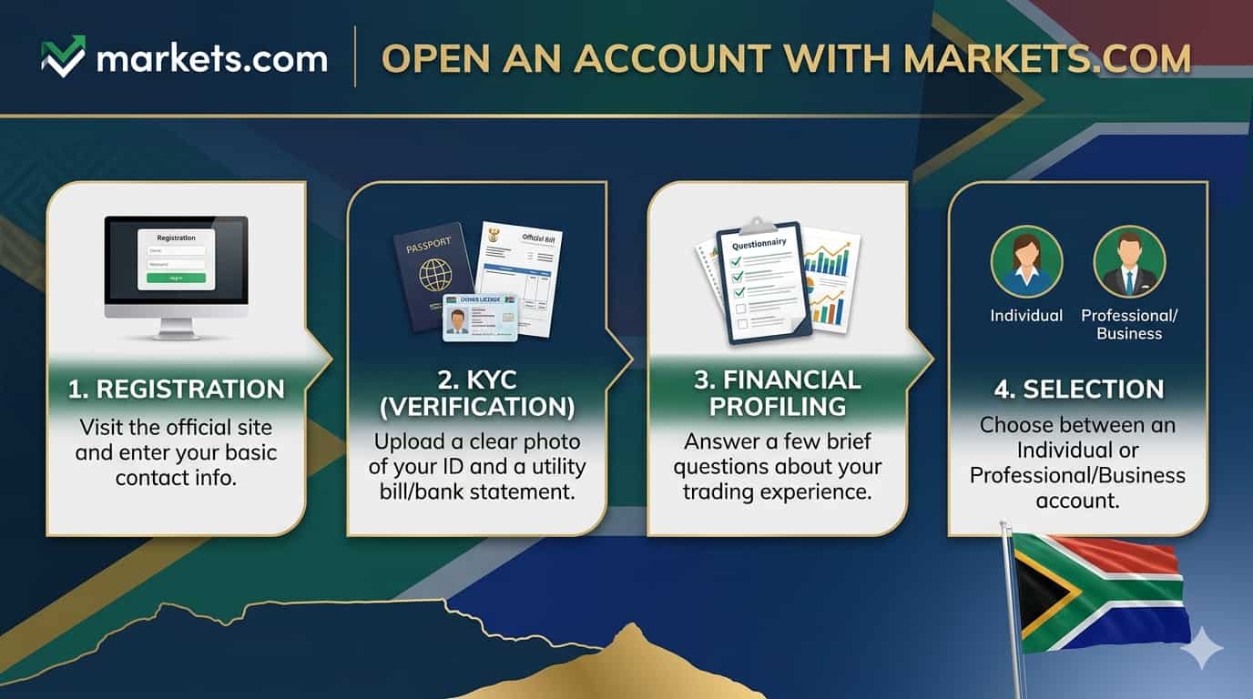 Select Account Type: markets.com offers various accounts, including individual and business accounts. Choose the one that fits your trading style.