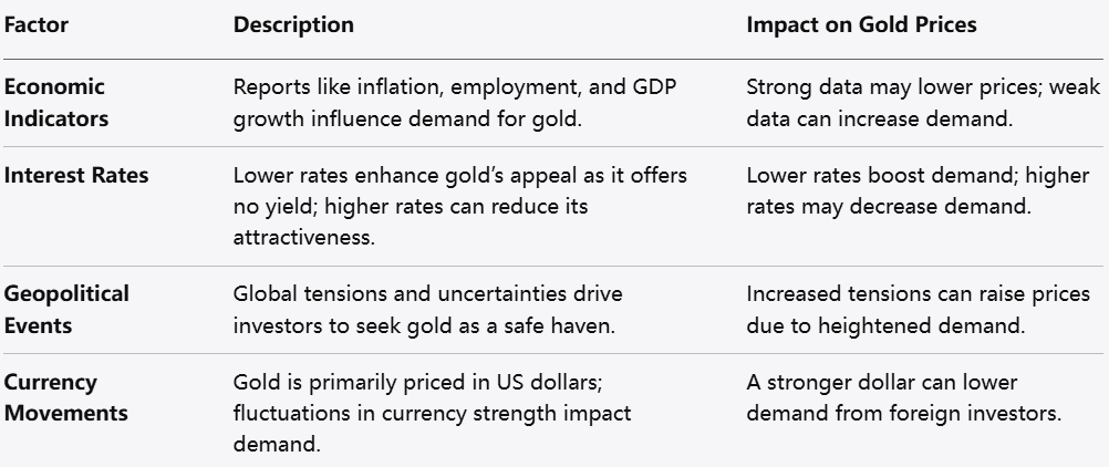 To trade gold effectively, it is essential to grasp the factors affecting its price fluctuations: