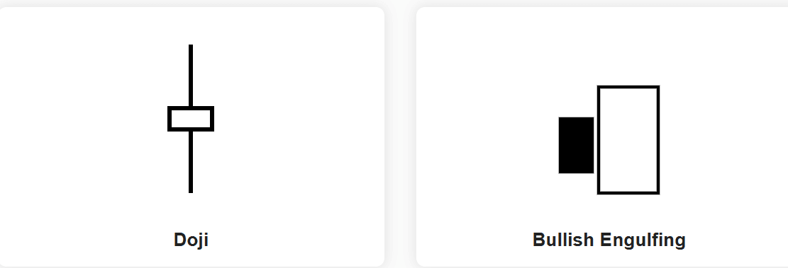 A smaller bearish candle followed by a larger bullish candle that completely engulfs the previous body. This pattern suggests a shift in momentum to the upside.