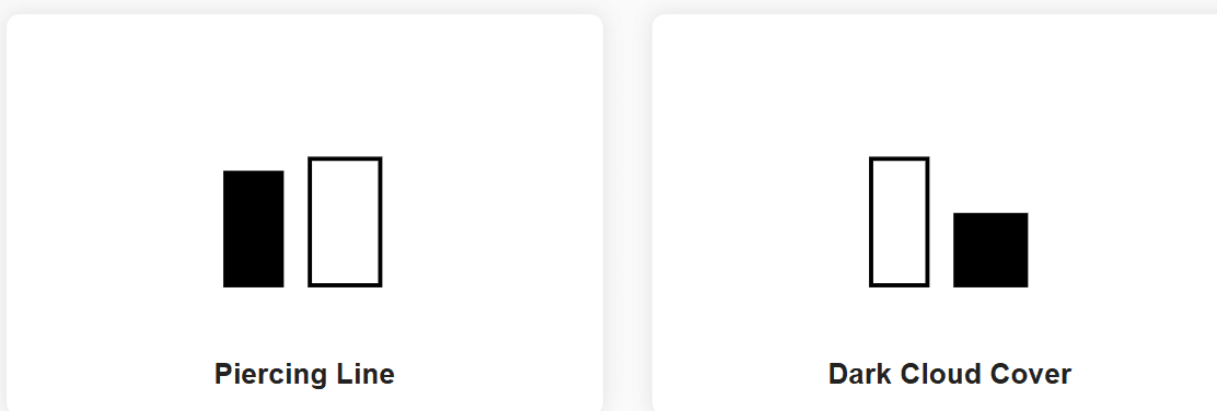 Opposite to the piercing line, this pattern features a bullish candle followed by a bearish candle that closes below the midpoint of the bullish candle, indicating a bearish reversal.