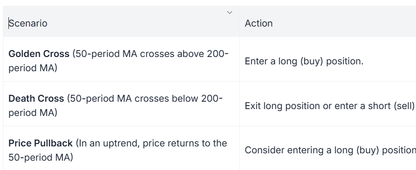 Traders often use moving averages to identify trend direction and potential support/resistance levels. A popular strategy involves the crossover of two moving averages (e.g., 50-period and 200-period) to generate buy or sell signals.