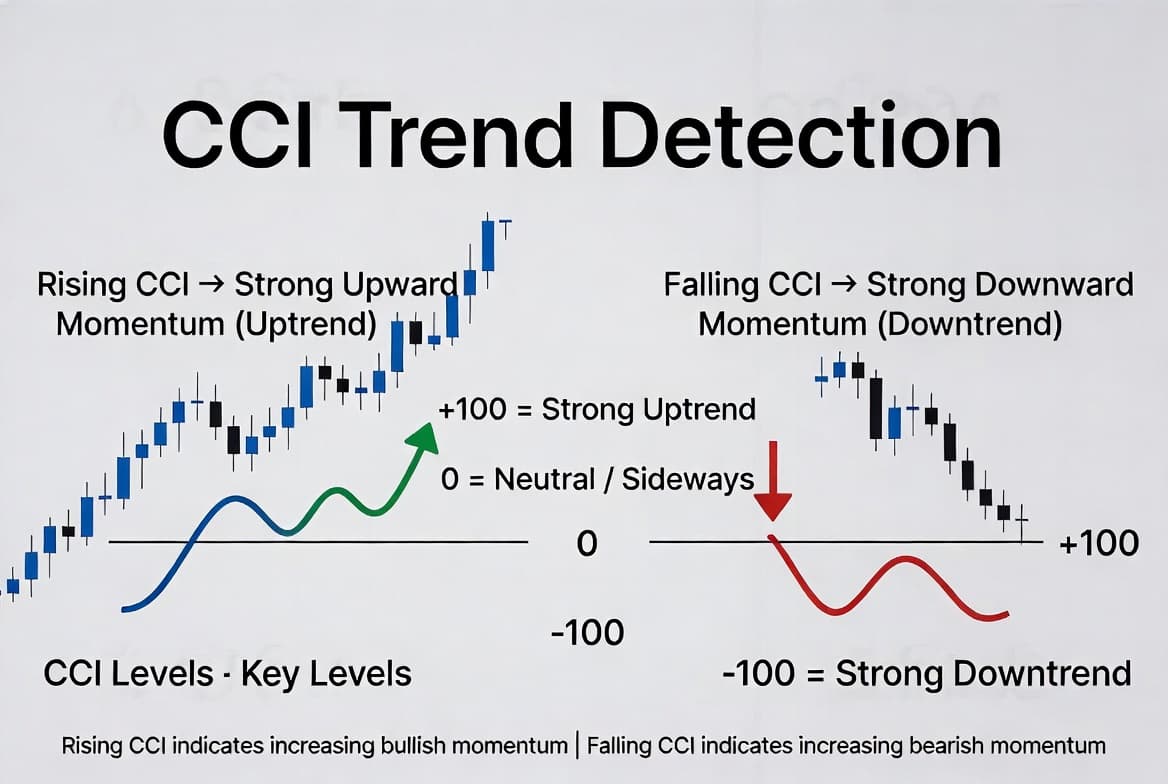 The CCI does not solely focus on price levels but also identifies the strength of the price trend. This ability to measure momentum can help traders make informed decisions based on market conditions.
