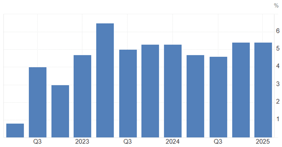 (Tasa de crecimiento del PIB de China interanual Gráfico, fuente: Trading Economics)