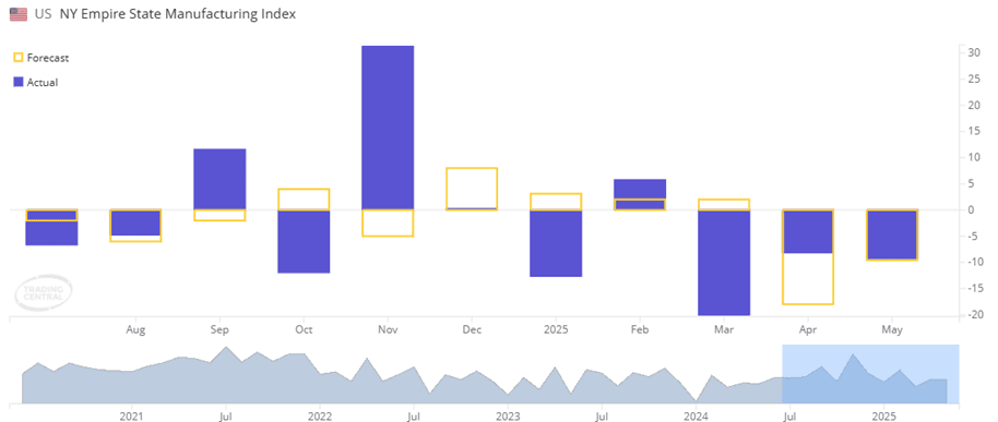 (Gráfico del índice manufacturero Empire State de Nueva York , fuente: Trading Central)