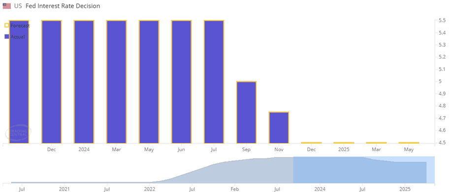 (Gráfico de la decisión de la Fed sobre los tipos de interés. Fuente: Trading Central)