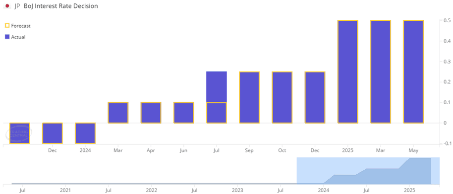 (Gráfico de la decisión sobre la tasa de interés del BoJ, fuente: Trading Central)