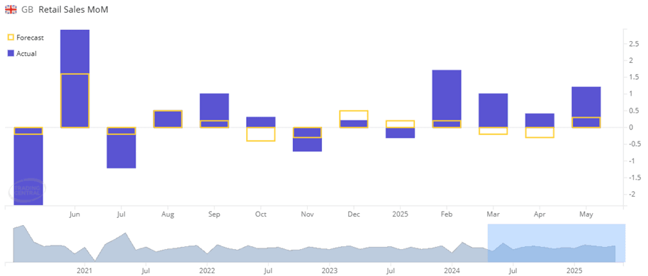 (Gráfico de las ventas minoristas intermensuales del Reino Unido, fuente: Trading Central)