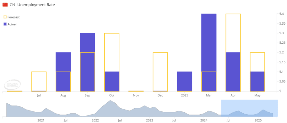 (Gráfico de la tasa de desempleo de China, fuente: Trading Central)