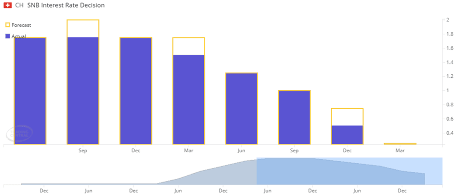 (Gráfico de la decisión de la tasa de interés del SNB, fuente: Trading Central)