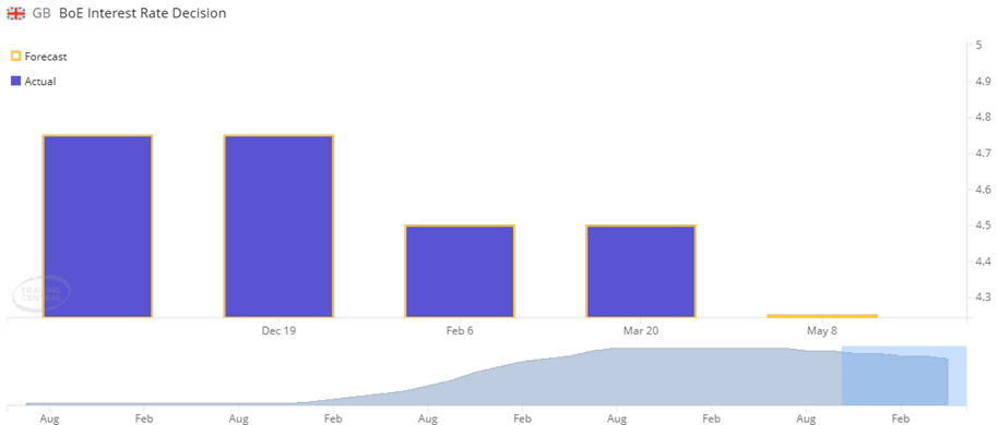 (Gráfico de la decisión del Banco de Inglaterra sobre los tipos de interés. Fuente: Trading Central)