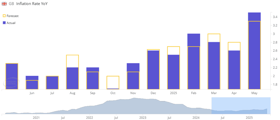 (Gráfico de la tasa de inflación interanual del Reino Unido, Fuente: Trading Central)