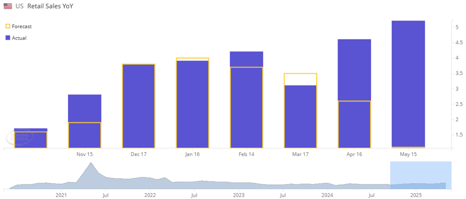 (Gráfico de las ventas minoristas interanuales en EE. UU., Fuente: Trading Central)