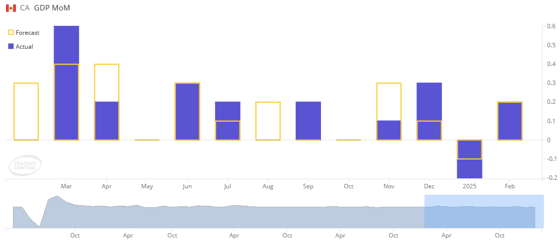 (Graphique du PIB du Canada m/m, Source : Trading Central)