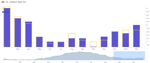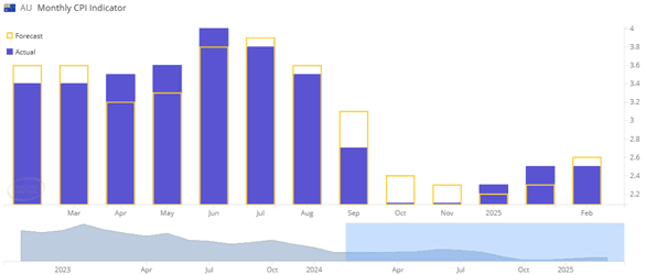 Mercredi 26 mars 2025 : [00h30 GMT] Indicateur mensuel de l'IPC en Australie, [07h00 GMT] Taux d'inflation au Royaume-Uni a/a