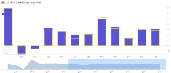 (Graphique du taux de croissance du PIB des États-Unis t/t, Source : Trading Central)