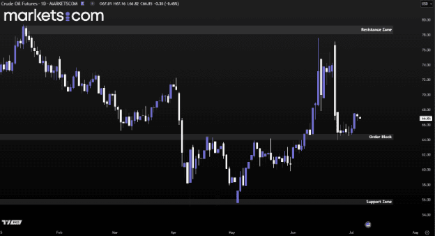 However, gains were capped by expectations that OPEC+ may agree to restore an additional 411,000 barrels per day (bpd) in August during its upcoming meeting on Sunday. Meanwhile, crude prices found some support from a recent trade agreement between the U.S. and Vietnam, although broader uncertainty remains as key partners like the EU and Japan have yet to finalize trade deals ahead of the July 9 tariff pause deadline.