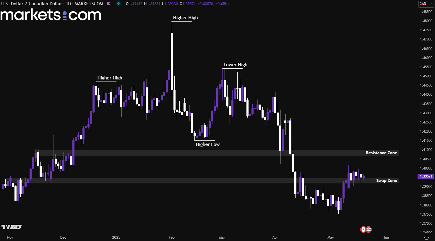 From a technical analysis perspective, the USD/CAD currency pair has been in a bearish trend since early February 2025, as indicated by a series of lower highs and lower lows. Recently, the pair broke above the swap zone of 1.3920 – 1.3950 and is currently retesting it. If it can close above this zone, the pair has the potential to move higher and retest the resistance area between 1.4070 and 1.4100.